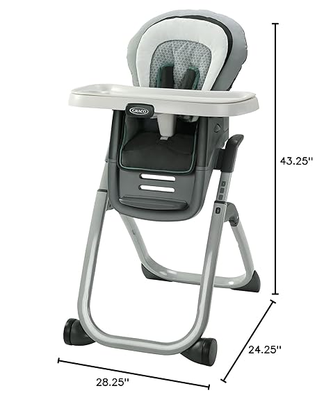 The Graco DuoDiner DLX 6-in-1 Highchair offers 6 growing stages from infant highchair to seating two kids at once. The highchair features infant body support and 3 recline positions, as well as 5 height positions to match dining table height. Transition to an infant or toddler booster on a dining room chair, then convert to an elevated youth stool to give your older child their own seat at the table. This highchair can even seat two kids at once to grow with your family!